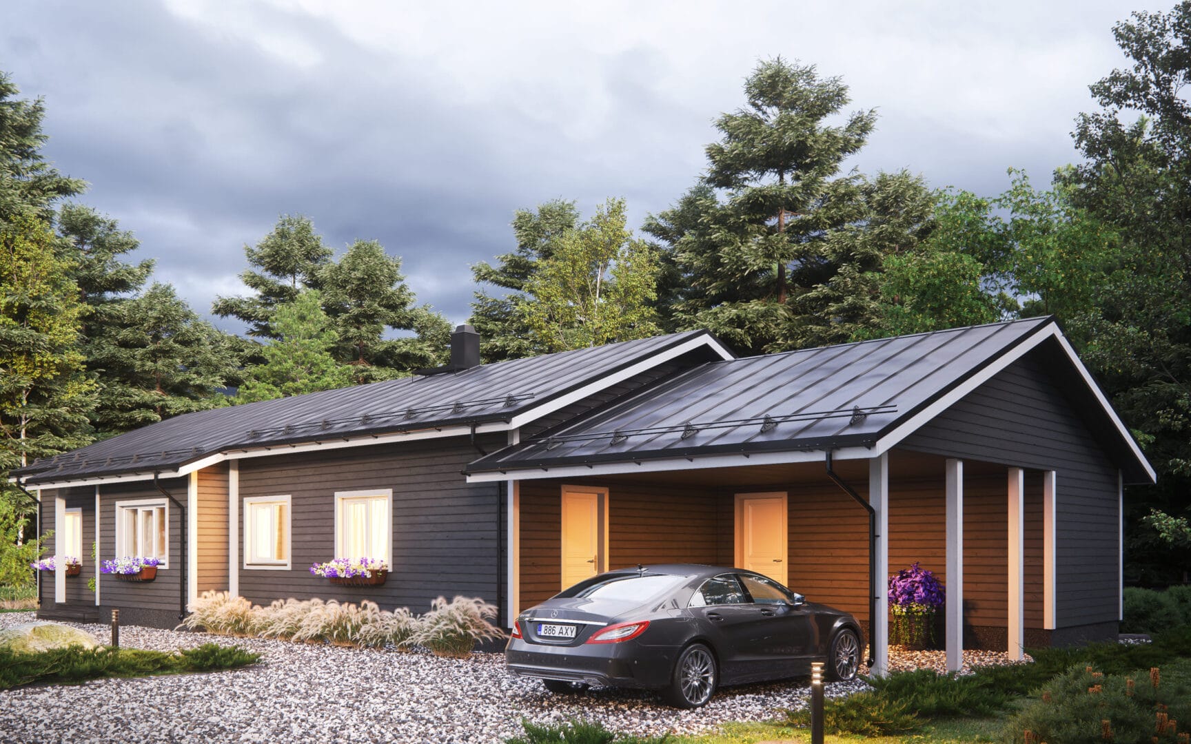 Ehituse käigus saab majale paigaldada ka päikesepaneelid, mis aitavad katta suure osa kodu elektrikulust, eriti suvekuudel, kui päevavalgust on kõige rohkem. Samuti on võimalik maja valmislahendusele lisada elektriauto laadimispunkt, video- ja valvesüsteemid, valgustus välisfassaadile või muud lisad, mis teevad Sinu elu uues kodus mugavamaks.